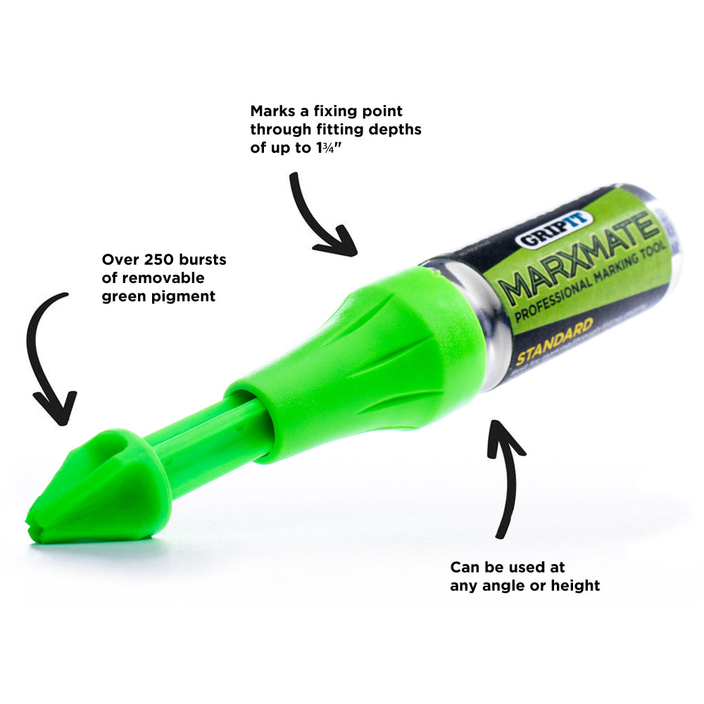 NB: MarXmate Deep Hole is recommended for jobs with fixing holes exceeding depths of 1¾" e.g. fence posts. It’s special nozzle is designed to shoot the green pigment further and more accurately. Not advised for marking distances under 1¾".